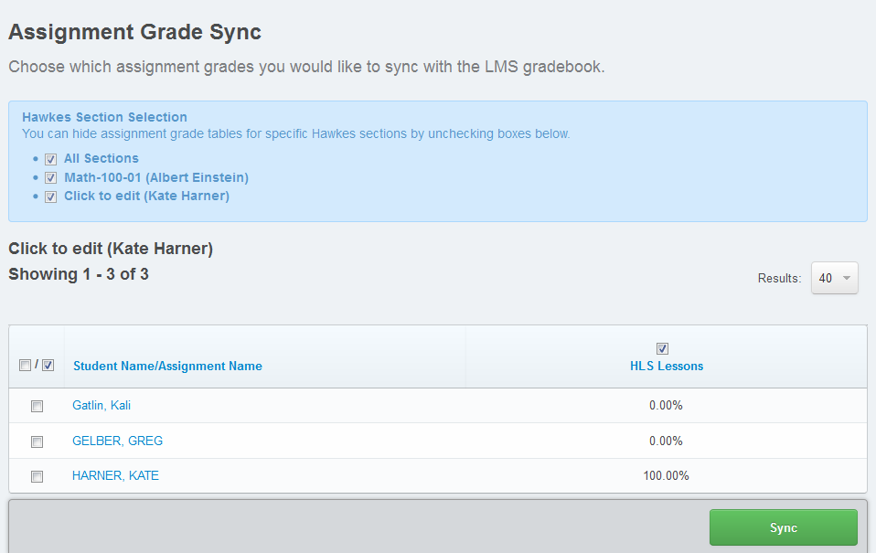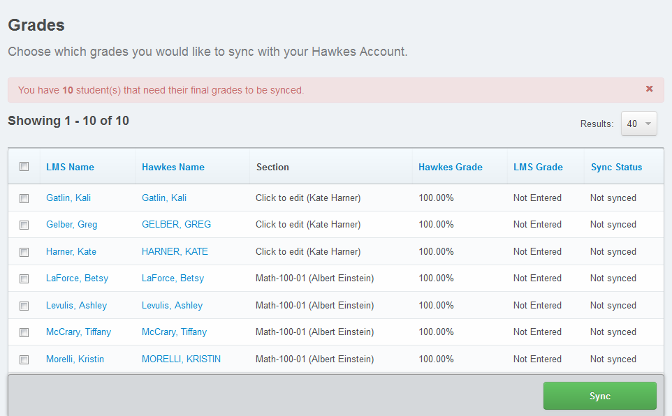 Final Grades syncs the students’ final Hawkes grades. You can create a new Final Grade column, or replace an existing Final Grade column in your LMS.