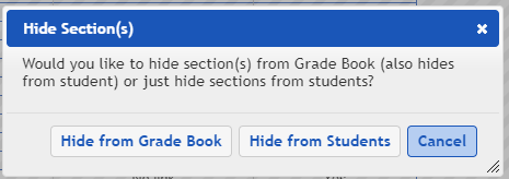 Instructors can now set a section as “Hidden” under Manage Sections in the Grade Book. This setting removes the section from all pages in the Grade Book except Manage Sections, Manage Students and Manage LMS Courses. All data and grades are preserved, but inactive sections will no longer interfere with easily identifying current sections when viewing reports or…