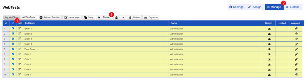Mark all WebTests assigned to your master section as Shared by selecting the WebTest(s), selecting the Manage tab, and selecting Share