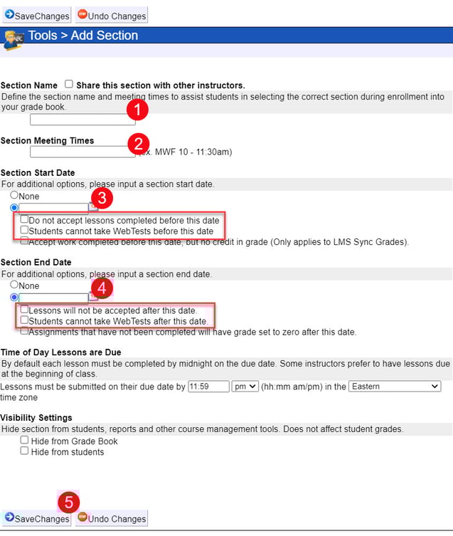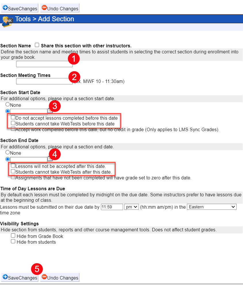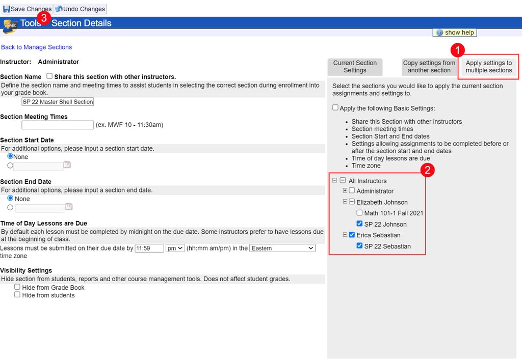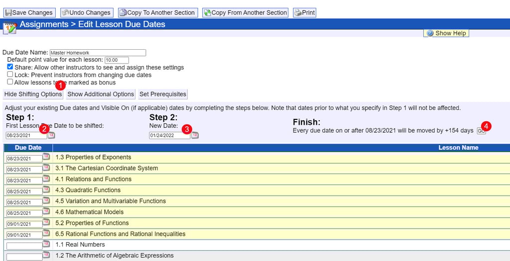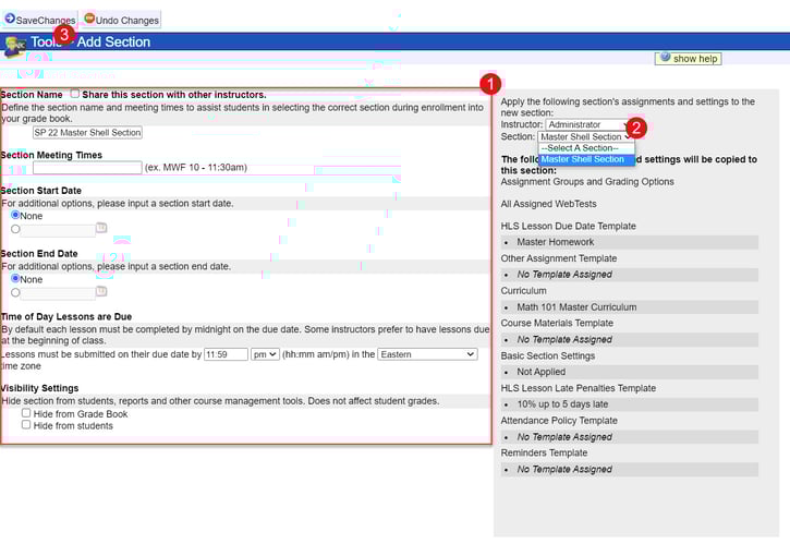 If you reused an old master section or created a new one and copied from an old one, a Lesson Due Dates template will be assigned to the section. If you created a new master section from scratch, you will need to create a new master Lesson Due Date template to assign to it.