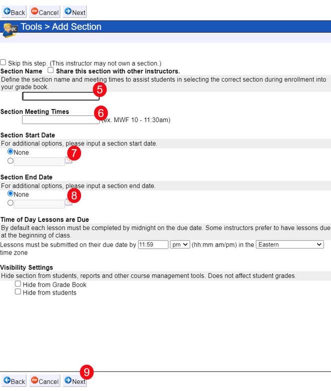Add New Instructors & Sections (Tools Tab > Manage Instructors/Sections)