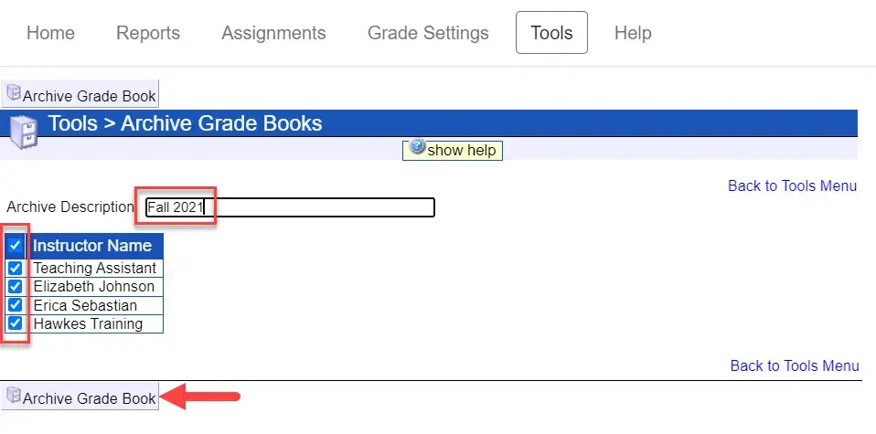 Archive Grade Book (Tools Tab > Archive Grade Books)