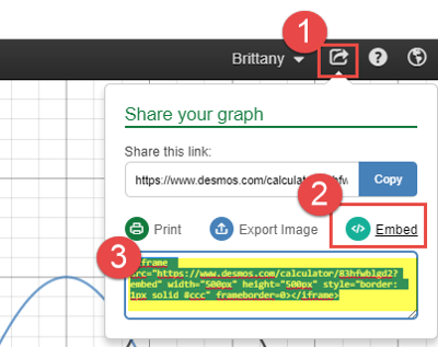 After you create your graph, select the Share option at the top of the page. Choose Embed, then copy the code.