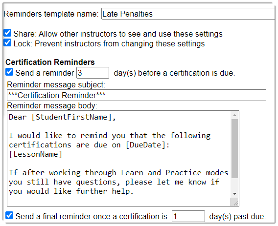 From the instructor’s standpoint, one tool I recommend to help students stay on track is setting auto reminders from Hawkes. I prefer to set a reminder to send to students if they have not completed the assignment by 24 hours prior to their due date, and again if they are more than five days late. The best feature of these reminders is that I can push those notifications to myself as well, helping me see at a glance who has not completed an assignment. This saves a lot of time and effort.