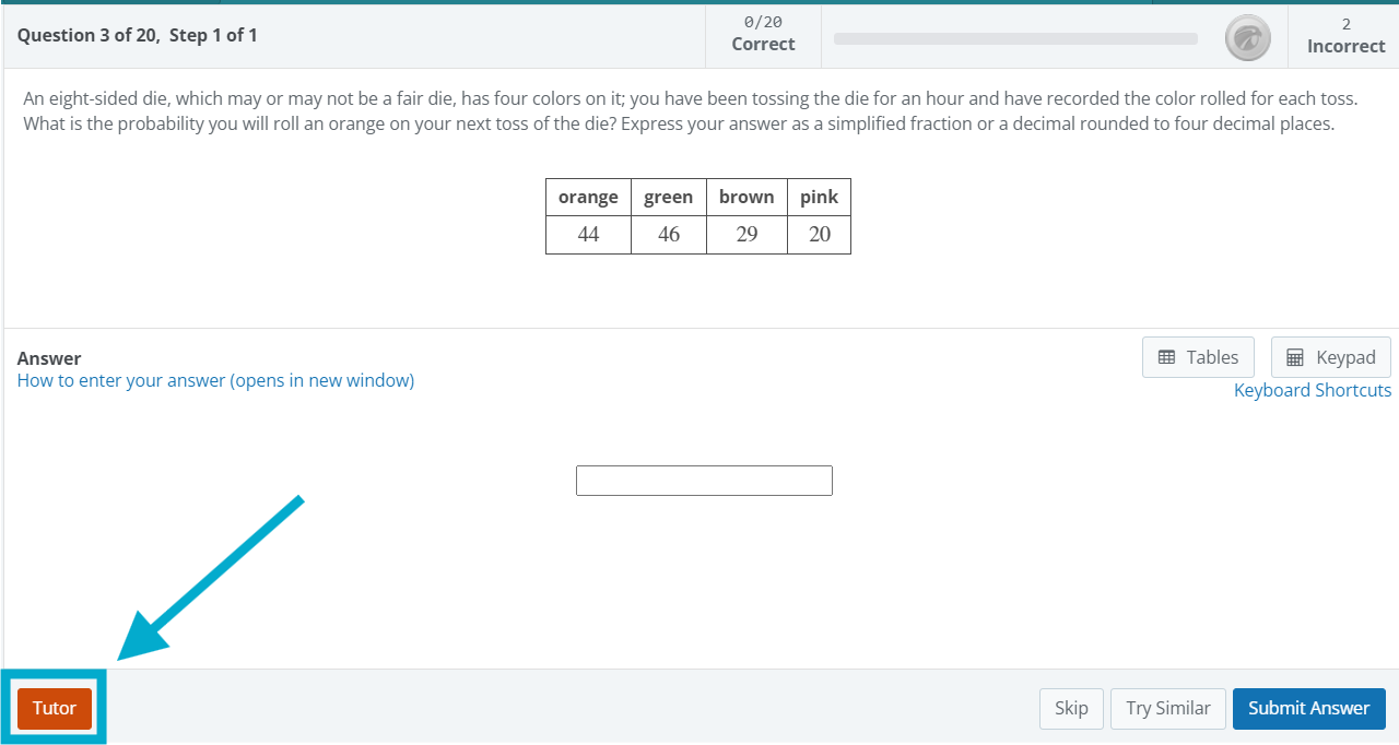 While completing a problem in the Practice tab, there is a section at the bottom left that says “Tutor.” This leads to three different options: Step-by-Step, Learn, and the overall solution.
