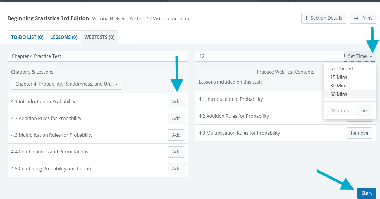 Another tool that Hawkes provides is the ability to create your own Practice Test. This function allows the students to create quizzes for themselves using specific chapters to cater to their needs. This is an amazing tool to use when preparing for exams. Students can use it while studying to test their ability to solve problems they struggle with.