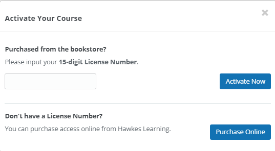 Select Purchase Online to purchase access directly from Hawkes Learning using your school name and a credit card.
