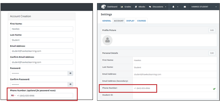 Students can now reset their learn.hawkeslearning.com password via a verified text message link in addition to email.