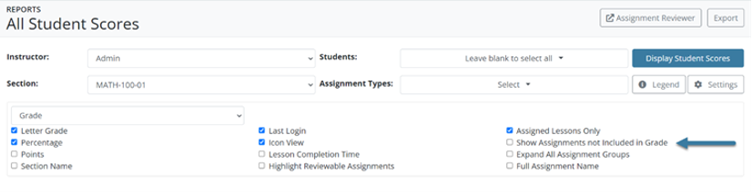 First, we’ve updated the default settings of the All Student Scores Report for better alignment with best practices, rearranged items for intuitive navigation, and added the ability to see ungraded assignments. This means faster analysis and more informed decisions, which empowers you and other instructors to analyze student scores with greater efficiency and uncover deeper learning trends within your classroom or school.