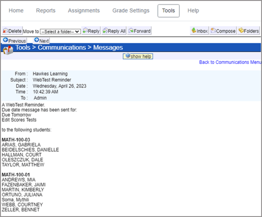 With this update, instructors will now be able to review which students received automated assignment reminders, improving at-a-glance review and hopefully allowing instructors to take action more quickly if needed.