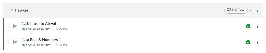 We’ve also improved how instructors using LTI Advantage tools in Canvas link Hawkes assignments. These links now show up as proper assignments, with points and due dates, and will open in a new tab by default.