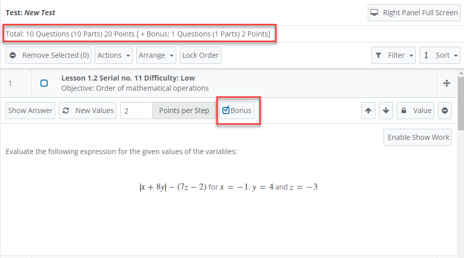Grade Book > WebTests > Assignment Builder – Bonus Questions
